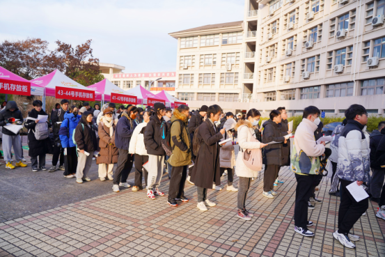 研考期間,恰逢杭州低溫寒潮天氣,研考首日氣溫更是跌破-6℃。針對特殊天氣情況,考點在考前加強對考場教室供電、空調、開水爐等的自查與維護,在考生主要用餐食堂為考生免費提供暖心姜湯和寓意成功的橙子。此外,在考場區域配備足量流動監考和志愿者,及時回復考生咨詢、解決考生突發情況,學校盡心貼心暖心的組考服務受到考生點贊好評。
