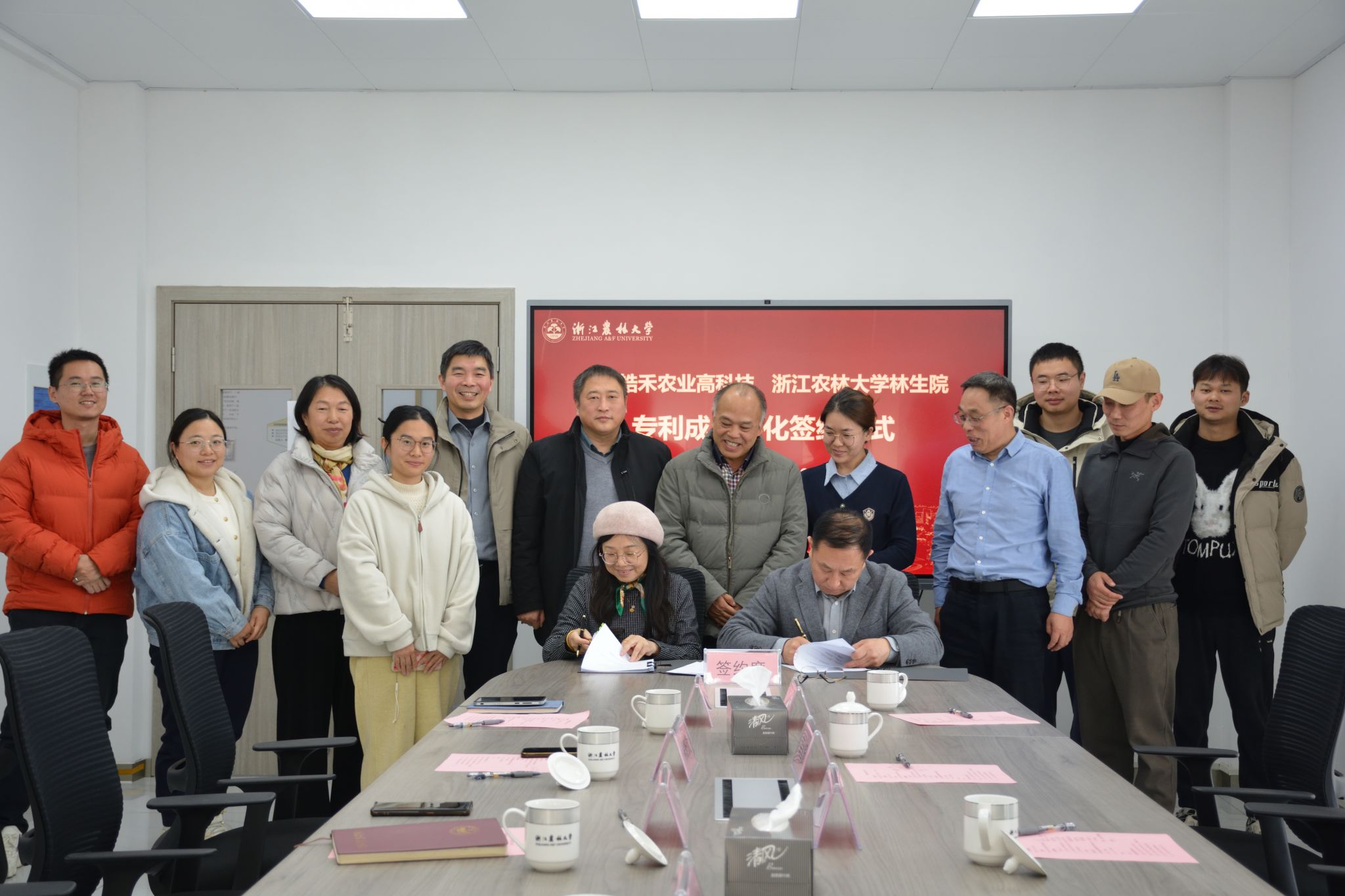 皓禾公司與陳杰教授簽訂了發(fā)明專利與農(nóng)藥登記證的成果轉(zhuǎn)化協(xié)議,專利轉(zhuǎn)化金額120萬元人民幣。成果轉(zhuǎn)化簽約儀式是一個新起點,林生院將繼續(xù)依托資源優(yōu)勢,秉持科技服務(wù)社會的理念,推動科研成果轉(zhuǎn)化,加強院企合作,為學(xué)校的發(fā)展作出更大貢獻(xiàn)。