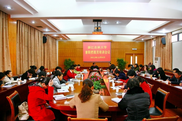 浙農林大新聞網訊 12月6日下午,全校兼職檔案員培訓會在行政樓第一會議室召開。副校長金佩華出席會議并講話。各學院(部)、各部門兼職檔案員及檔案館全體人員參加了會議。會議由校辦主任胡祖吉主持。