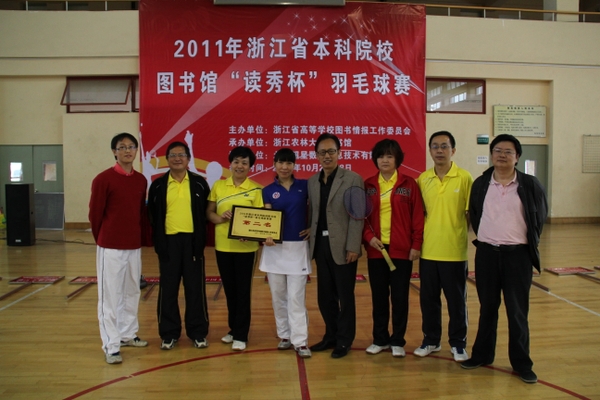浙農(nóng)林大新聞網(wǎng)訊 10月28日中午, 2011年浙江省本科院校圖書館“讀秀杯”羽毛球賽在我校風雨操場落下帷幕。經(jīng)過兩天的激烈角逐,浙江農(nóng)林大學代表隊奮勇拼搏,以嫻熟的技術配合和成功的戰(zhàn)術安排,奪得“團體賽”第二名,第一名和第三名分別由浙江師范大學、湖州師范學院和浙江科技學院代表隊獲得。