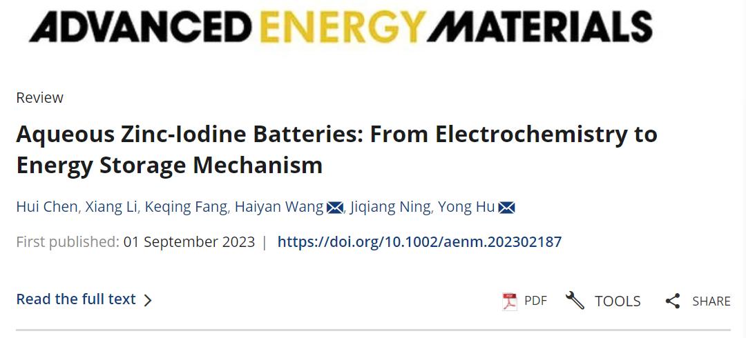 9月1日,化材學院納米催化與能源轉化研究團隊(胡勇教授團隊)在國際頂尖期刊《Advanced Energy Materials》(中科院1區Top,IF=27.8)在線發表題為“Aqueous Zinc-Iodine Batteries: From Electrochemistry to Energy Storage Mechanism”(水系鋅基電池:從電化學到儲能機制)的綜述文章。