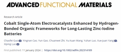 近日,化材學院化學學科新能源材料與傳感器件團隊在國際知名期刊《Advanced Functional Materials》(中科院1區Top,IF=19)在線發表題為“Cobalt Single-Atom Electrocatalysts Enhanced by Hydrogen-Bonded Organic Frameworks for Long-Lasting Zinc-Iodine Batteries”(用于長效鋅碘電池的氫鍵有機框架增強的鈷單原子電催化劑)的研究論文。本校青年教師郭超飛博士為第一兼通訊作者,化學學科羅錫平教授和楊雪娟老師為通訊作者。浙江農林大學為第一單位,合作單位為上海大學,溫州大學和香港城市大學。